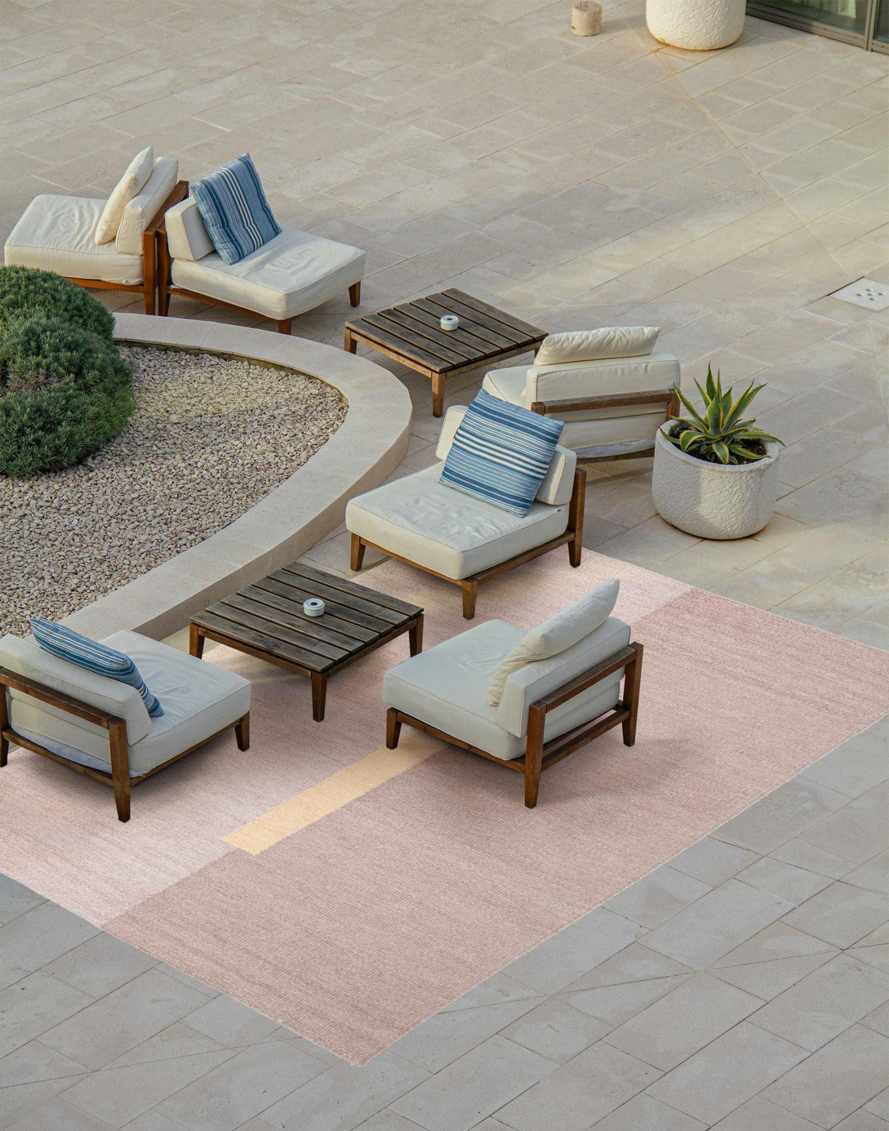 Italic sind gewebte Kelim mit besonders dicker und weicher Strucktur. Als Material werden aussortierte PET-Flaschen recycelt. In einem Zwischenschritt wird der Garn so bearbeitet, dass er seine weiche Oberfläche erhält.