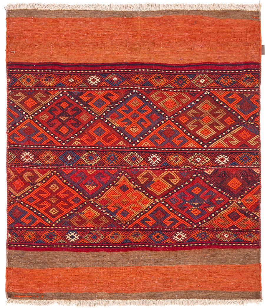 Von Nomaden, ausschließlich nach traditioneller Methode handgefertigt, ist diese seltene Kelimart das Ergebnis wahrer Handwerkskunst.