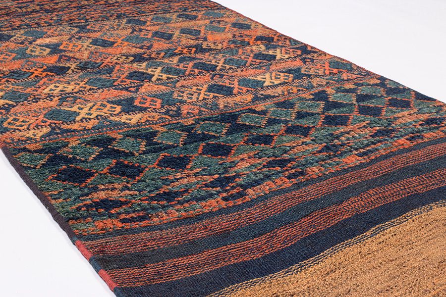 Von Nomaden & Bauern, ausschließlich nach traditioneller Methode handgefertigt, ist diese seltene Kelimart das Ergebnis wahrer Handwerkskunst. Diese seltenen Einzelstücke sind sowohl am Boden als auch an der Wand ein Blickfang!