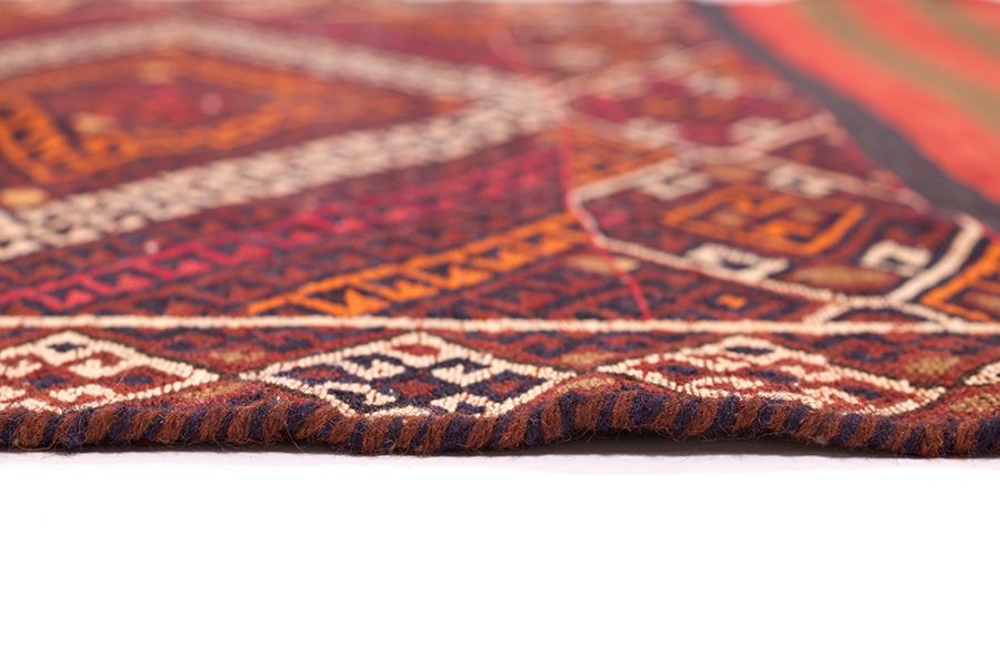 Von Nomaden & Bauern, ausschließlich nach traditioneller Methode handgefertigt, ist diese seltene Kelimart das Ergebnis wahrer Handwerkskunst. Diese seltenen Einzelstücke sind sowohl am Boden als auch an der Wand ein Blickfang!