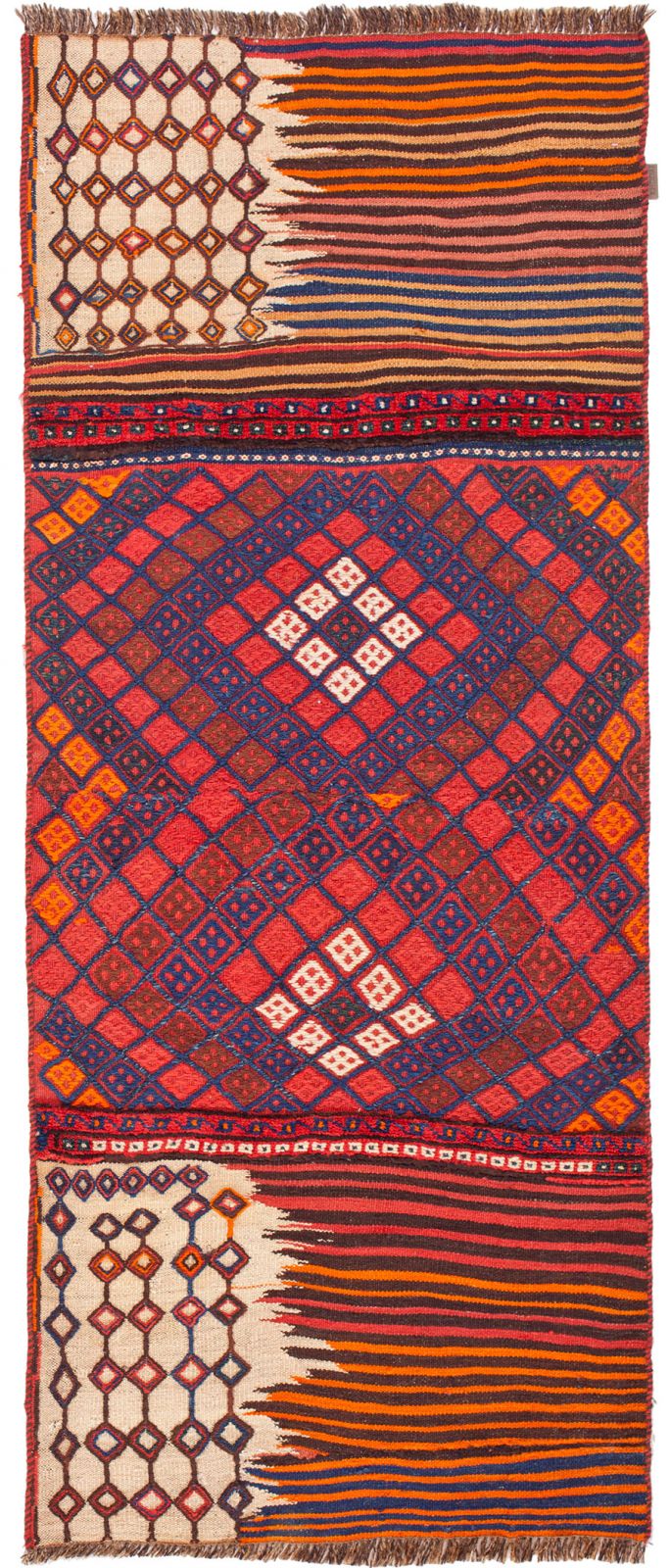 Von Nomaden & Bauern, ausschließlich nach traditioneller Methode handgefertigt, ist diese seltene Kelimart das Ergebnis wahrer Handwerkskunst. Diese seltenen Einzelstücke sind sowohl am Boden als auch an der Wand ein Blickfang!