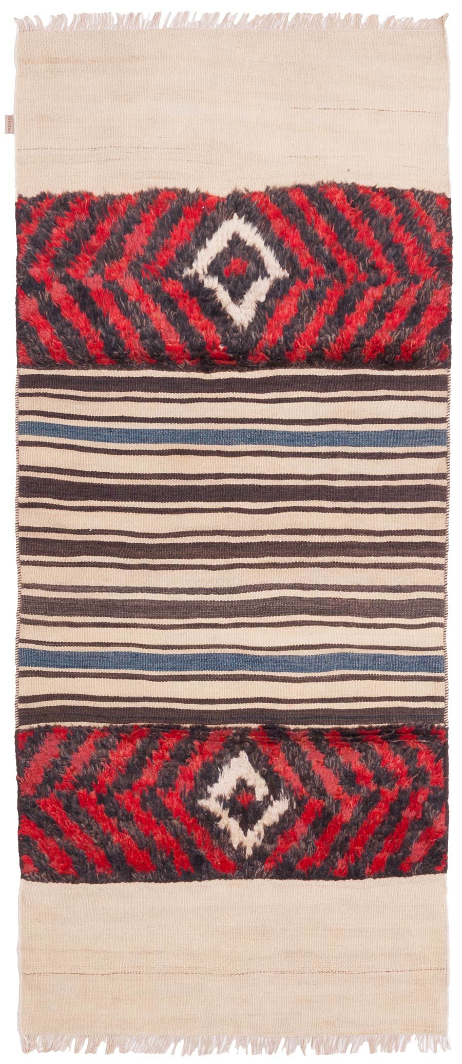 Von Nomaden & Bauern, ausschließlich nach traditioneller Methode handgefertigt, ist diese seltene Kelimart das Ergebnis wahrer Handwerkskunst. Diese seltenen Einzelstücke sind sowohl am Boden als auch an der Wand ein Blickfang!