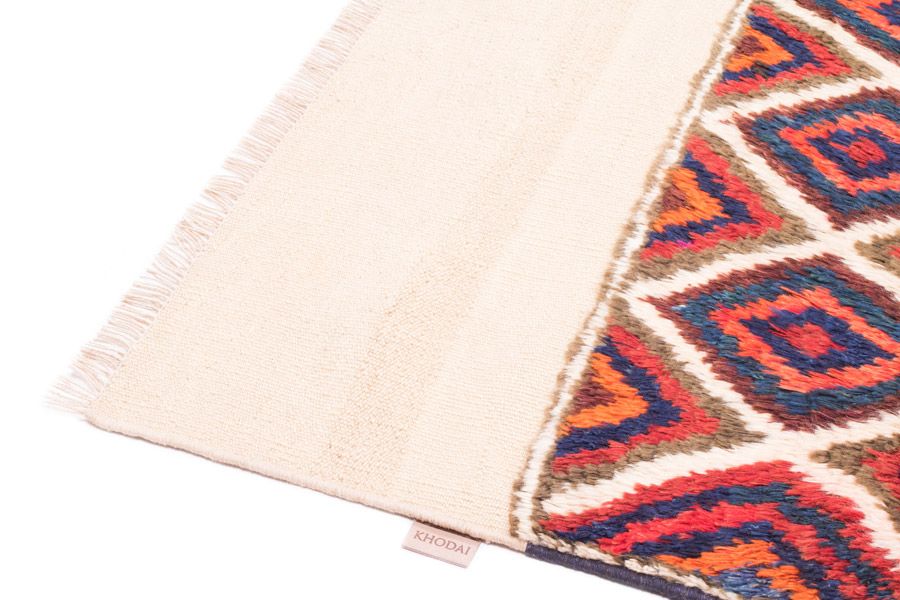 Von Nomaden & Bauern, ausschließlich nach traditioneller Methode handgefertigt, ist diese seltene Kelimart das Ergebnis wahrer Handwerkskunst. Diese seltenen Einzelstücke sind sowohl am Boden als auch an der Wand ein Blickfang!