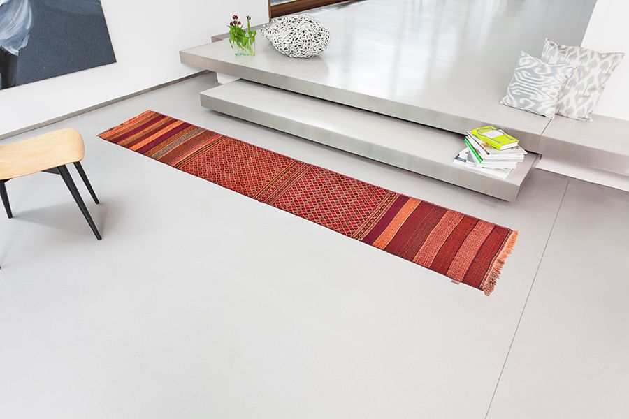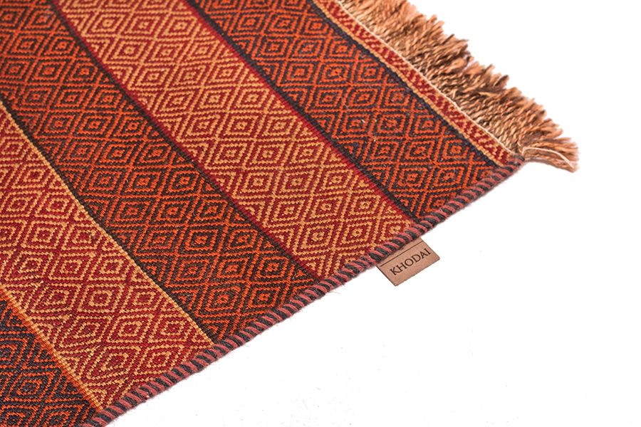 Von Nomaden & Bauern, ausschließlich nach traditioneller Methode handgefertigt, ist diese seltene Kelimart das Ergebnis wahrer Handwerkskunst. Diese seltenen Einzelstücke sind sowohl am Boden als auch an der Wand ein Blickfang!