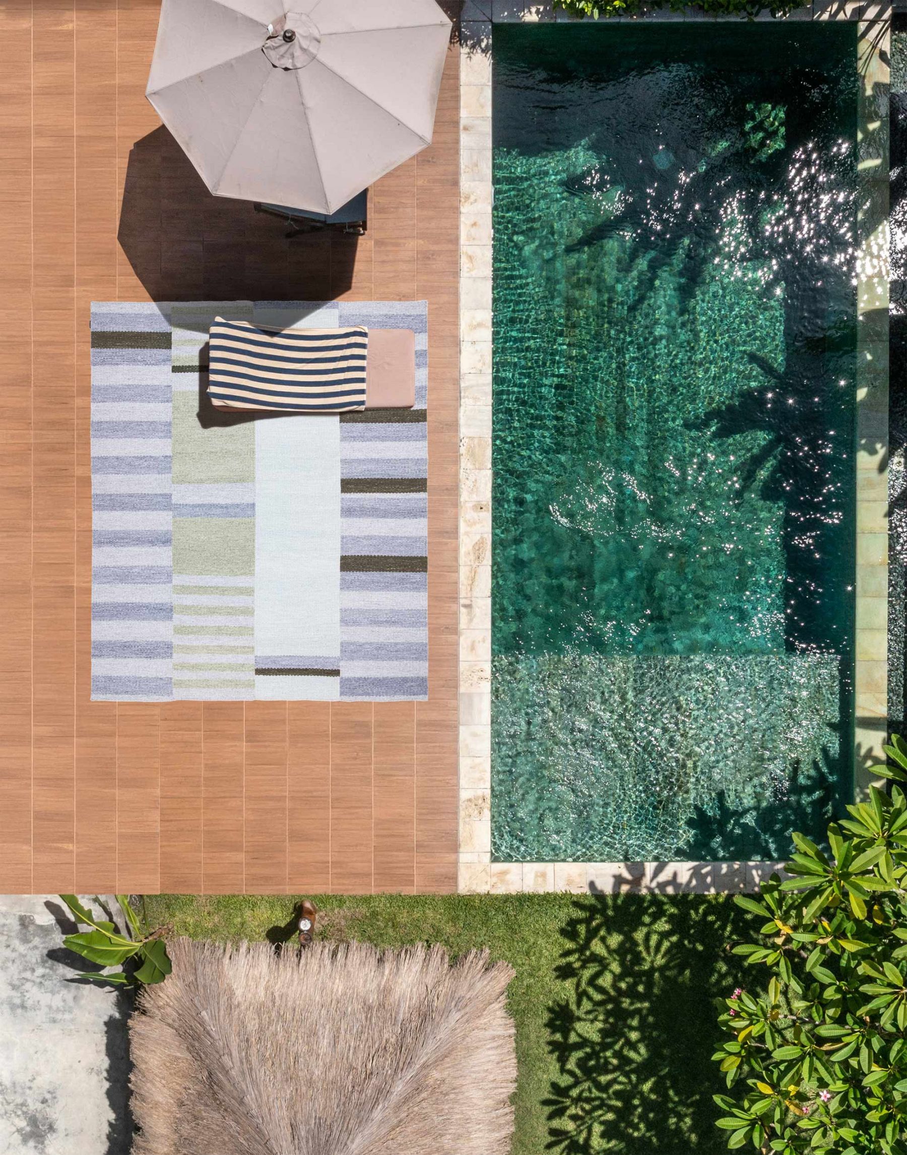 Italic sind gewebte Kelim mit besonders dicker und weicher Strucktur. Als Material werden aussortierte PET-Flaschen recycelt. In einem Zwischenschritt wird der Garn so bearbeitet, dass er seine weiche Oberfläche erhält.