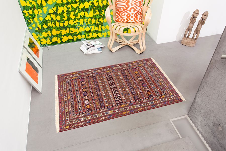 Unsere Sirjan Kelim stammen aus dem Süden des Iran. Sirjan sind Kelim und Teppich in Einem. Es sind Meisterwerke der Handarbeit, denn sie werden gewebt, bestickt und geknüpft.