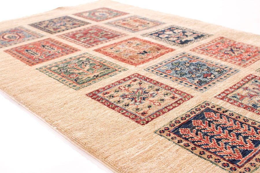 Dieser Bakhtiari ist ein handgeknüpftes Unikat. Die verwendeten Fasern sind absolut natürlich – die Kette aus Baumwolle und der Flor aus handgesponnener Hochlandschafwolle.