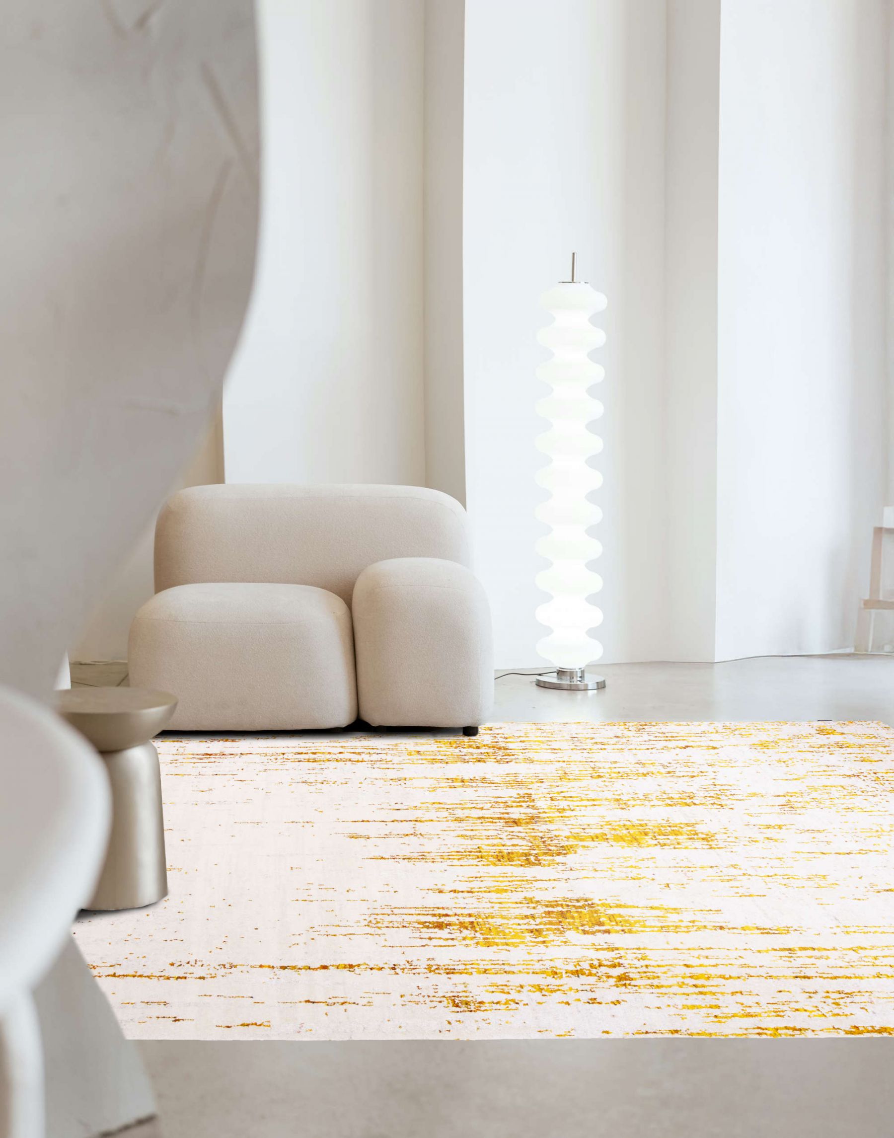 Der knallige Seidenteppich hat einzigartige Farbhighlights und eine außergewöhnlich seidige Haptik. Die modernen Designerteppiche der Sari Silk Kollektion bestehen aus recycelter Seide indischer Saris.