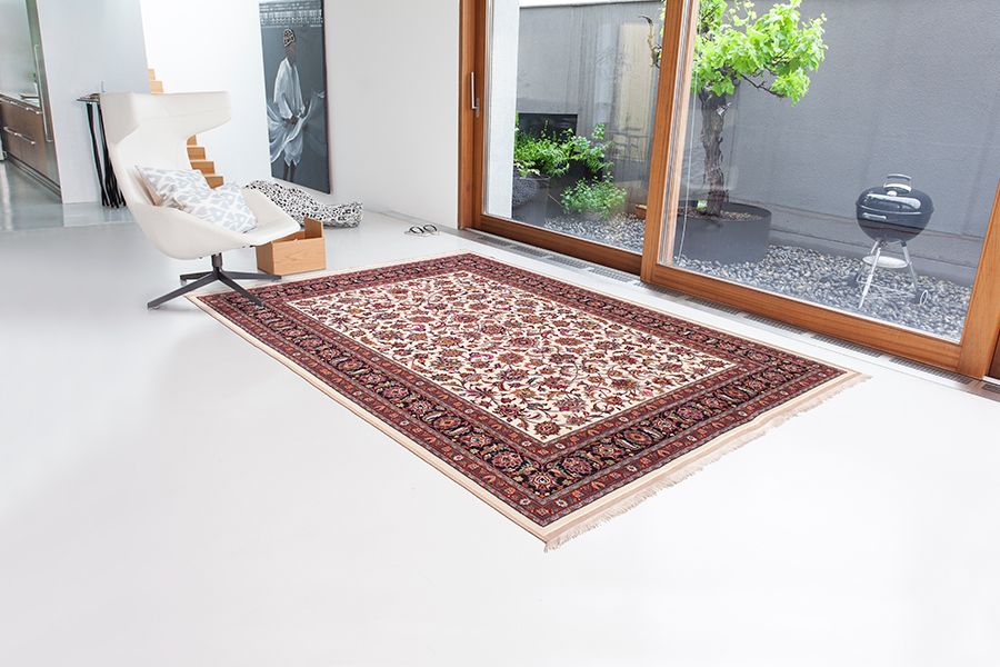 Mashad Teppiche sind klassische, absolut hochwertig verarbeitete Orientteppiche. Sie bestehen aus reinen Naturfasern und werden im Iran handgeknüpft. Sie zeigen wunderschön Florale Muster.