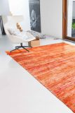 Der knallige Seidenteppich hat einzigartige Farbhighlights und eine außergewöhnlich seidige Haptik. Die modernen Designerteppiche der Sari Silk Kollektion bestehen aus recycelter Seide indischer Saris.